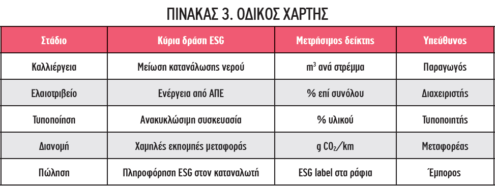 Πρακτικός πίνακας εφαρμογής ESG στην αλυσίδα αξίας ελαιολάδου
