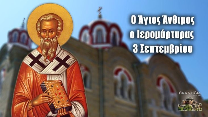 Παρασκευή 3 Σεπτεμβρίου σήμερα και σύμφωνα με το εορτολόγιο τιμάται η μνήμη του Ιερομάρτυρος Ανθίμου επισκόπου, του Ιερομάρτυρος Αριστίωνος επισκόπου, του Αγίου Αρχοντίωνος μάρτυρος, του Νεομάρτυρος Πολυδώρου Νέας Εφέσου και της Οσίας Φοίβης μάρτυρος.